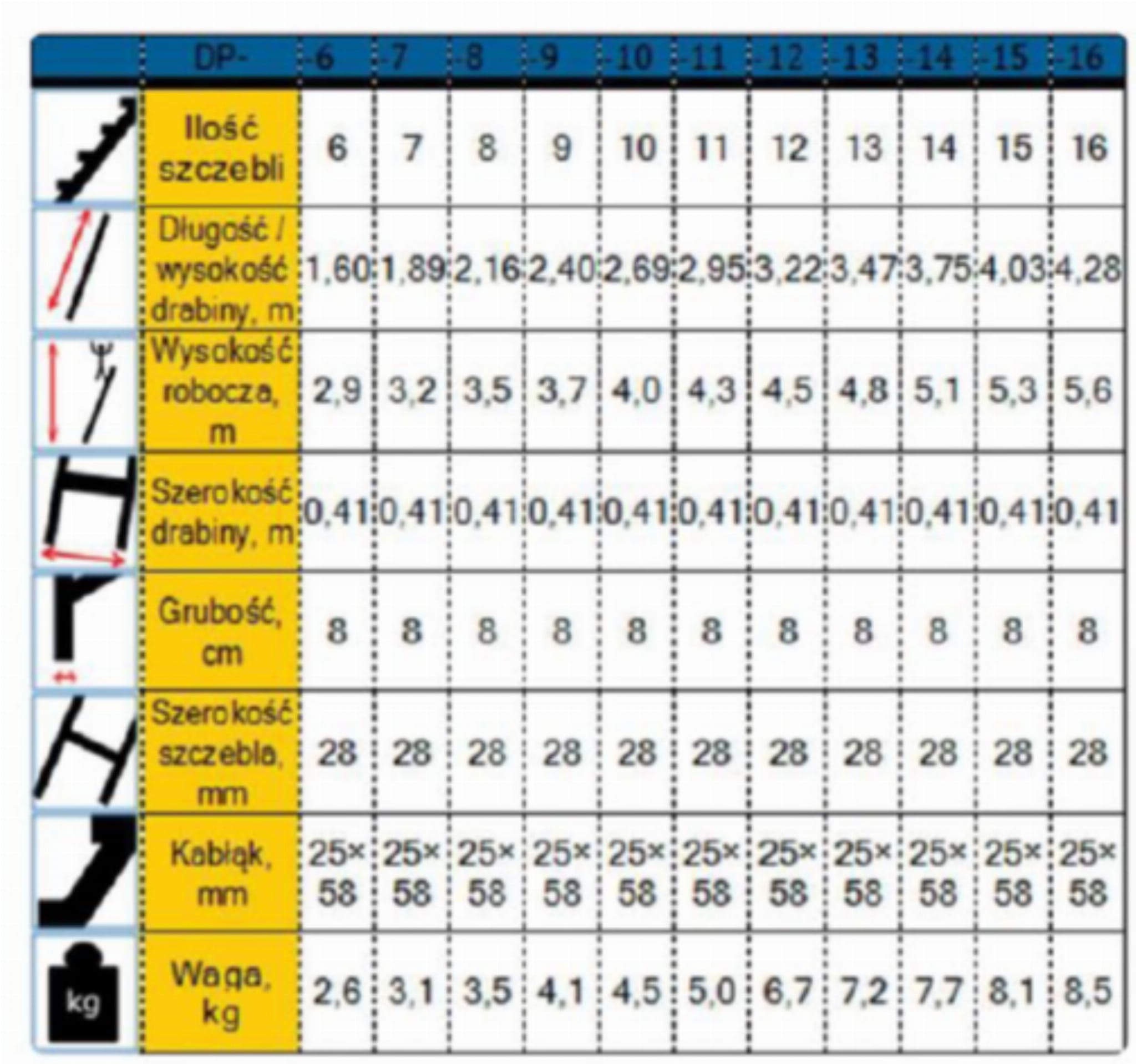 • drabiny aluminiowe – lekkie, odporne na korozję i bardzo praktyczne,
