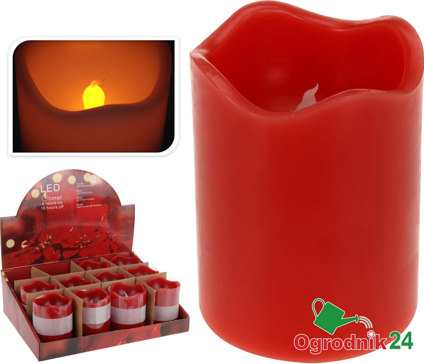 Świeczka posiada timer który ustawia świeczkę na 6 godzin włączoną i 18 godzin wyłączoną.