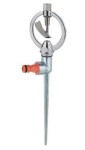 Metalowy obrotowy zraszacz wbijany w ziemię. Kąt zraszania 360°, maksymalny zasięg 14m, wydajność 13l/min-3 Bar.