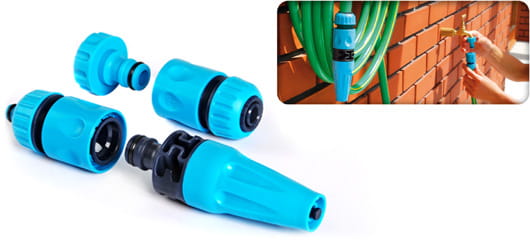 4 ELEMENTOWY /REGULOWANA DYSZA ZRASZAJĄCA+ DWIE SZYBKOZŁĄCZKI+ PRZYŁĄCZE NA KRAN-3/4 CALA