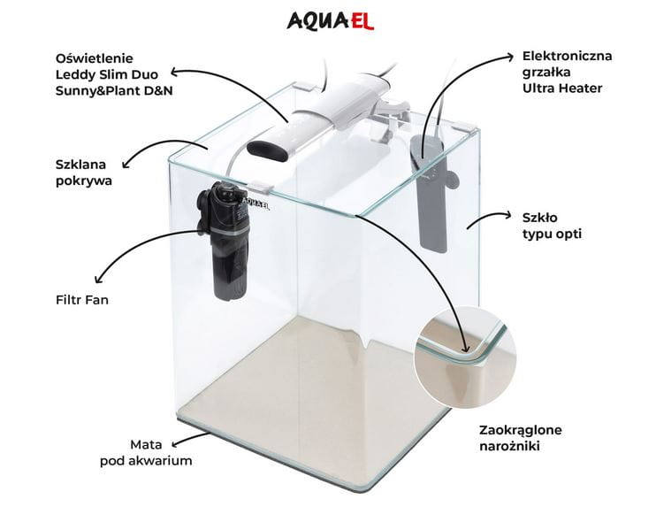 - Elektroniczną grzałkę Ultra Heater w trwałej obudowie z tworzywa, z systemem Smart Heating System, który samodzielnie dobiera moc grzania do warunków otoczenia;