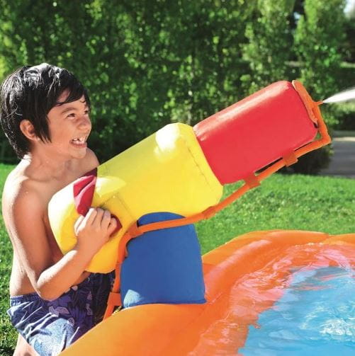 Dmuchany basen dla dzieci Turbo Splash Water Zone marki Bestway to własny park wodny w ogrodzie.