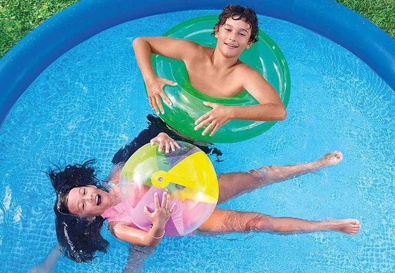 Mały basenik w sam raz nadaje się do pływania dla małych dzieci. Łatwy w rozstawieniu - wystarczy nadmuchać górną oponkę a basen będzie unosił się wraz z nalewaną wodą.