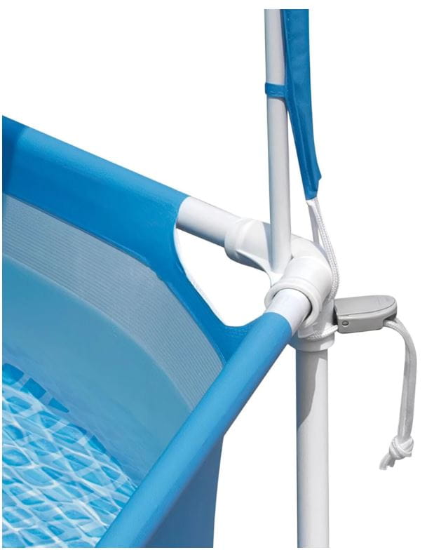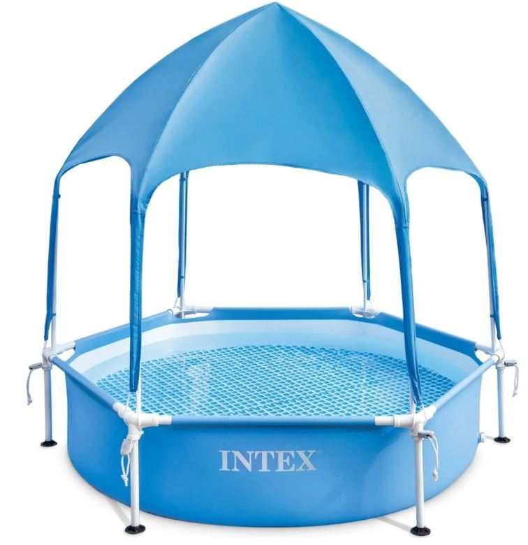 Basen o wymiarach 183 x 38 cm oferuje nie tylko zabawę w wodzie, ale także ochronę przed słońcem dzięki dodatkowemu zadaszeniu.