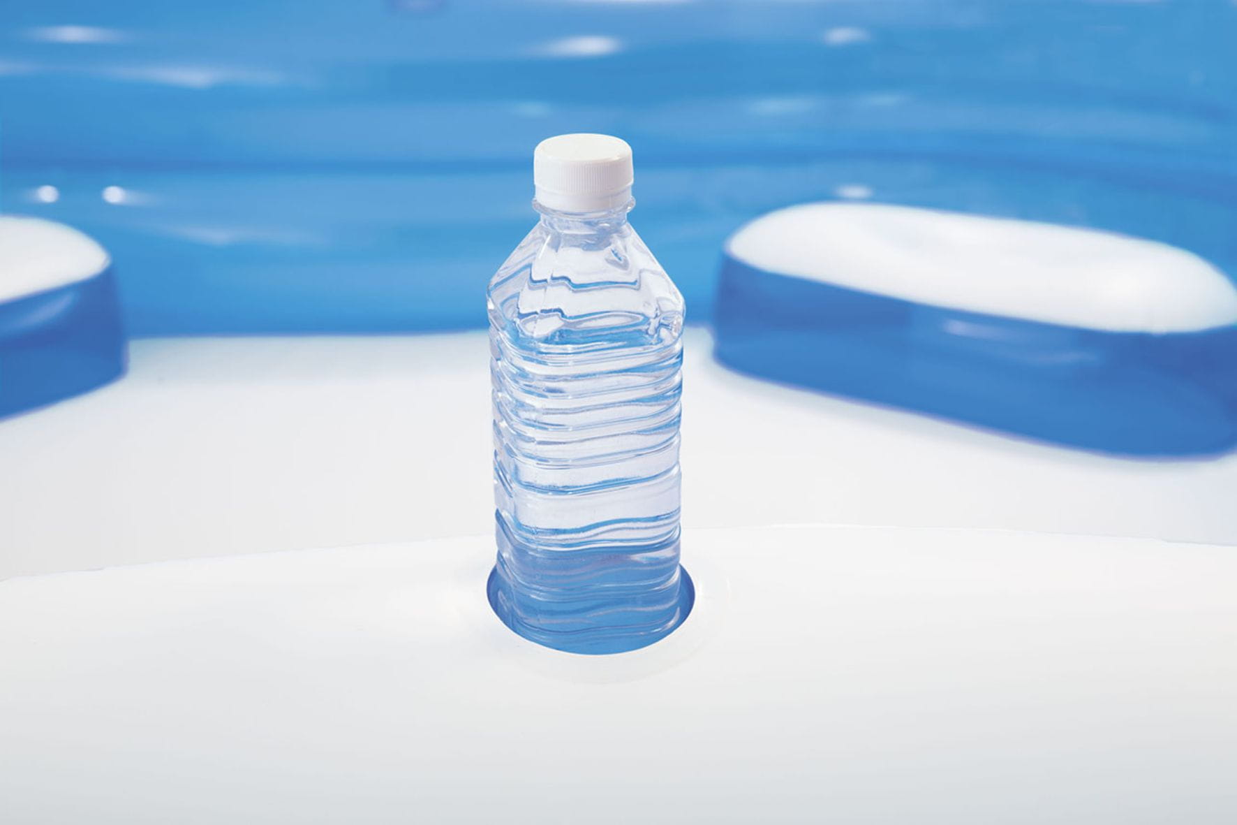 Basen ogrodowy wykonano z mocnego materiału PVC 0.33 mm.. Świetnie sprawdzi się zarówno dla dzieci, jak i dorosłych. Ważną zaletą basenu jest to, że posiada 4 siedziska z oparciami i 2 uchwyty na napoje. W ten sposób użytkownicy mają zapewniony pełny komfort podczas odpoczynku. Basen można rozłożyć w ogrodzie, na tarasie, a także zabrać ze sobą na wyjazd.