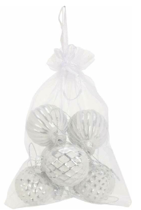 Bombeczki bombki małe szklane tłoczone biało-srebrne 6 szt. 4 cm 685399