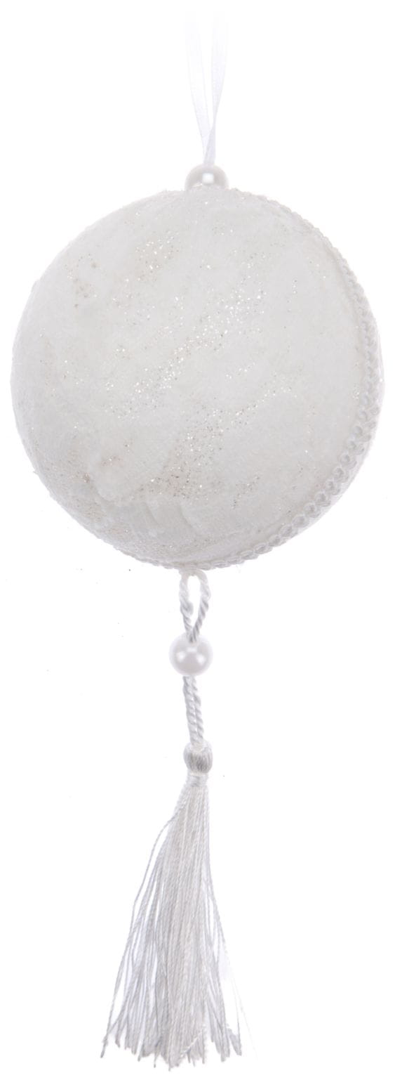 Bombka biała 7cm brokat ozdoba 599835