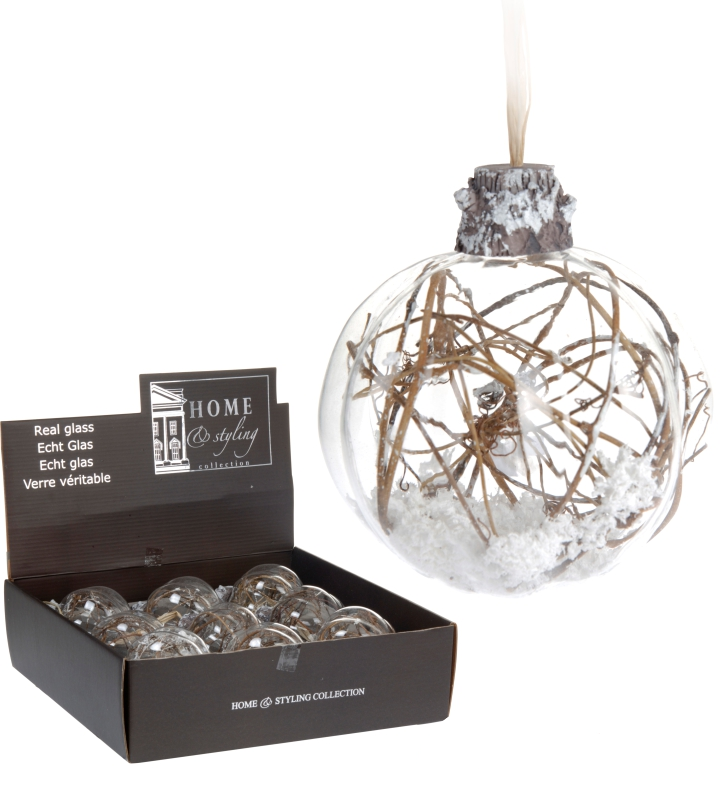 W środku bombki znajdują się gałązki i sztuczny śnieg, co dodaje bombkom uroku