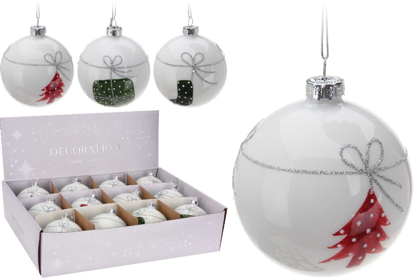 Bombka szklana biała 8cm 12szt 323269 ozdoba