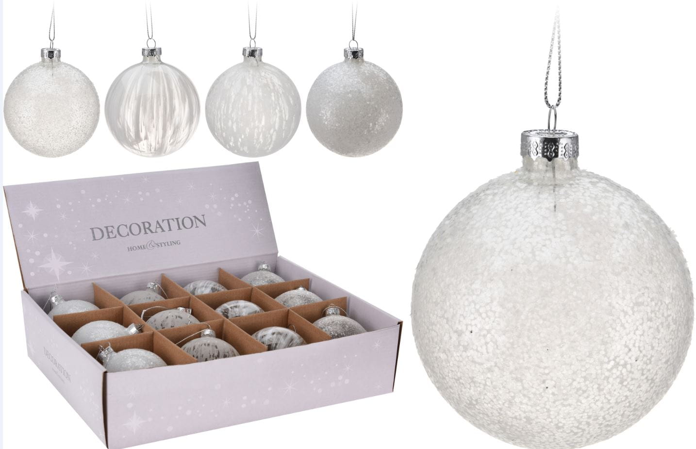 Bombka szklana biała 8cm 12szt 323597 ozdoba