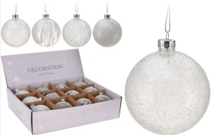 Średnica bombki 8 cm. W opakowaniu znajduje się 12 sztuk bombek.