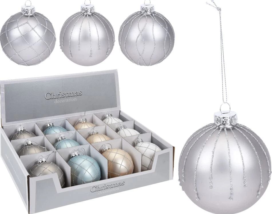 Bombka szklana mix 8cm 12szt 122521 matowa ozdoby świąteczne