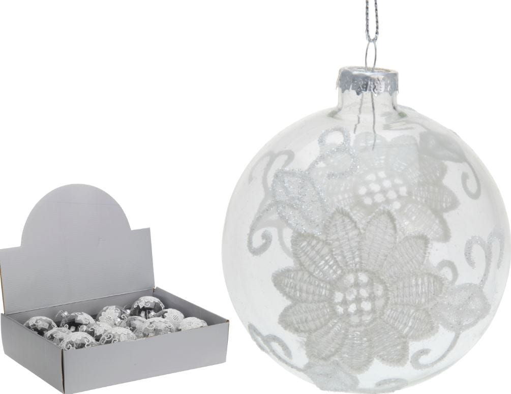 Bombka szklana przeźroczysta z koronką 8cm 12szt 331435