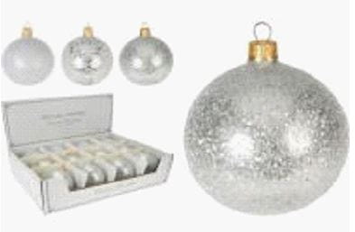 Bombka szklana srebrna 8cm 12szt 006057