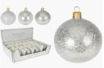 Bombki srebrne szklane 8cm zdobione srebrnym brokatem 12 szt. 006057