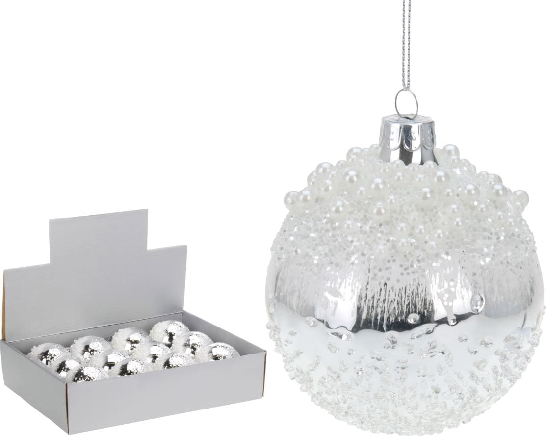 Bombka szklana srebrna biała koralik 8cm 12szt 365249 ozdoby świąteczne