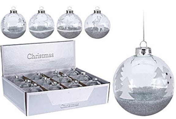 Bombki szklane przeźroczyste 8 cm szare 12 szt. 740745
