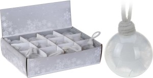 Średnica bombki 8 cm. W opakowaniu znajduje się 12 sztuk bombek.