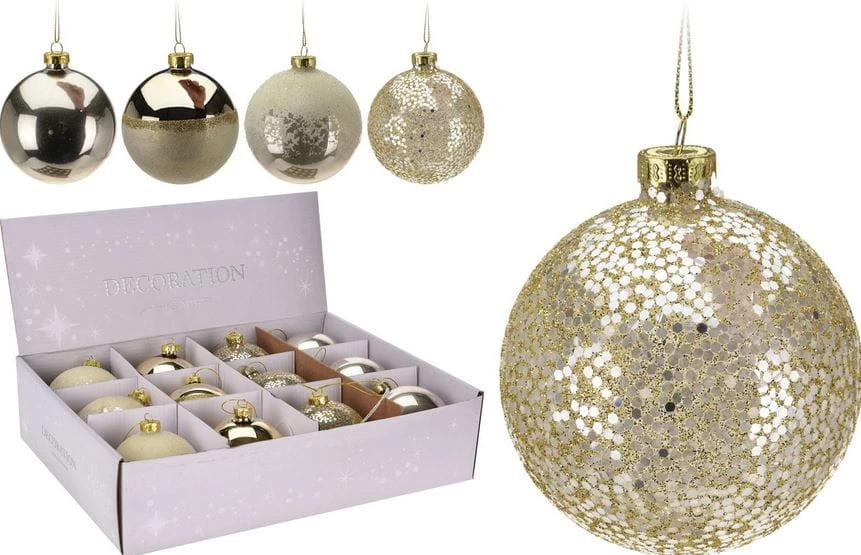 Bombka szklana złota 8cm 12szt 323566 ozdoby świąteczne