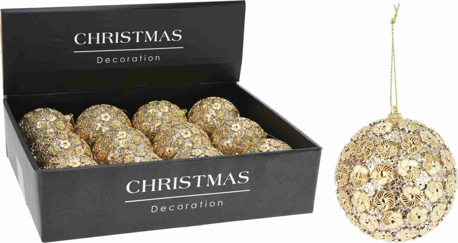 Bombka złota 8 cm cekiny tworzywo sztuczne 12 szt. 164221