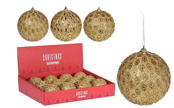 Bombka złota z kamykami 10cm 12szt 774719 ozdoby świąteczne