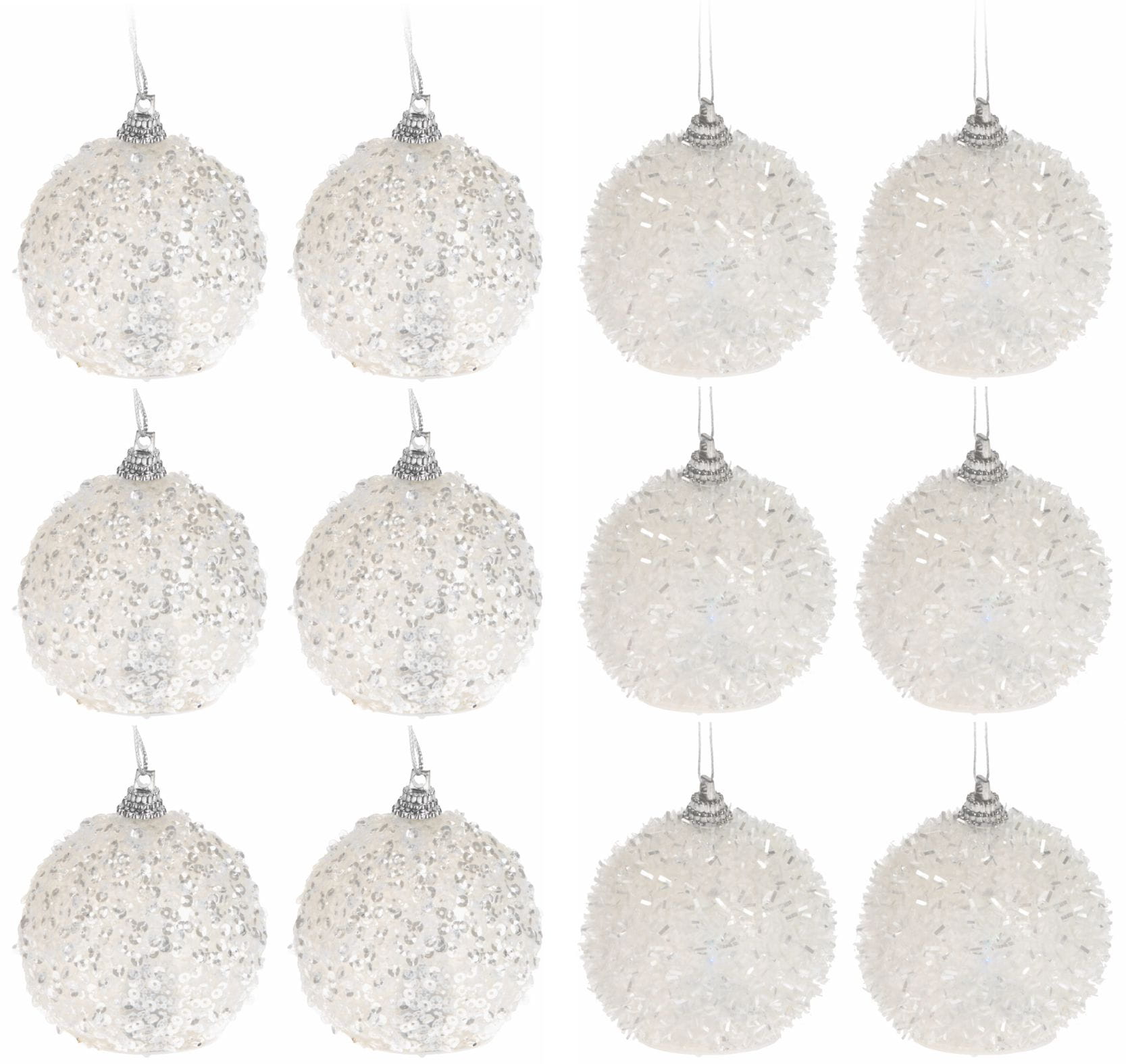 Piękne bombki plastikowe do postawienia wewnątrz domu, bądź do powieszenia na choince. Bombki posiadają światełko LED, które zmienia kolor. W zestawie bombki w 2 wzorach: 6szt z paseczkami i 6szt z cekinami.