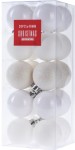 Komplet 20 bombek z oczkami i sznurkami do powieszenia.
