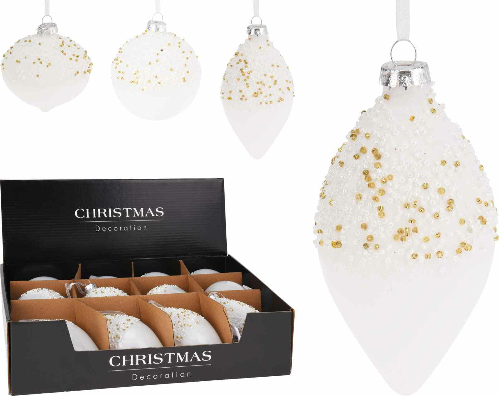 Bombki białe szklane z cekinami 12 sztuk 8cm 3 wzory 165693