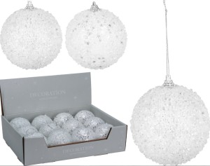 Bombki choinkowe białe brokatowe 8cm 12szt 207396