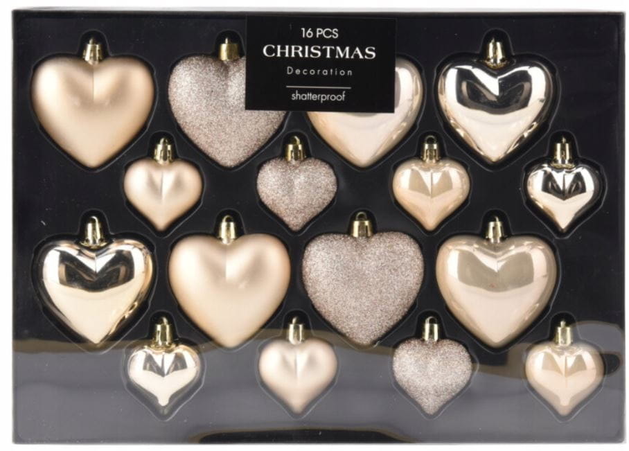 Bombki choinkowe serca 16 szt kolor kremowy 243094 ozdoby świąteczne