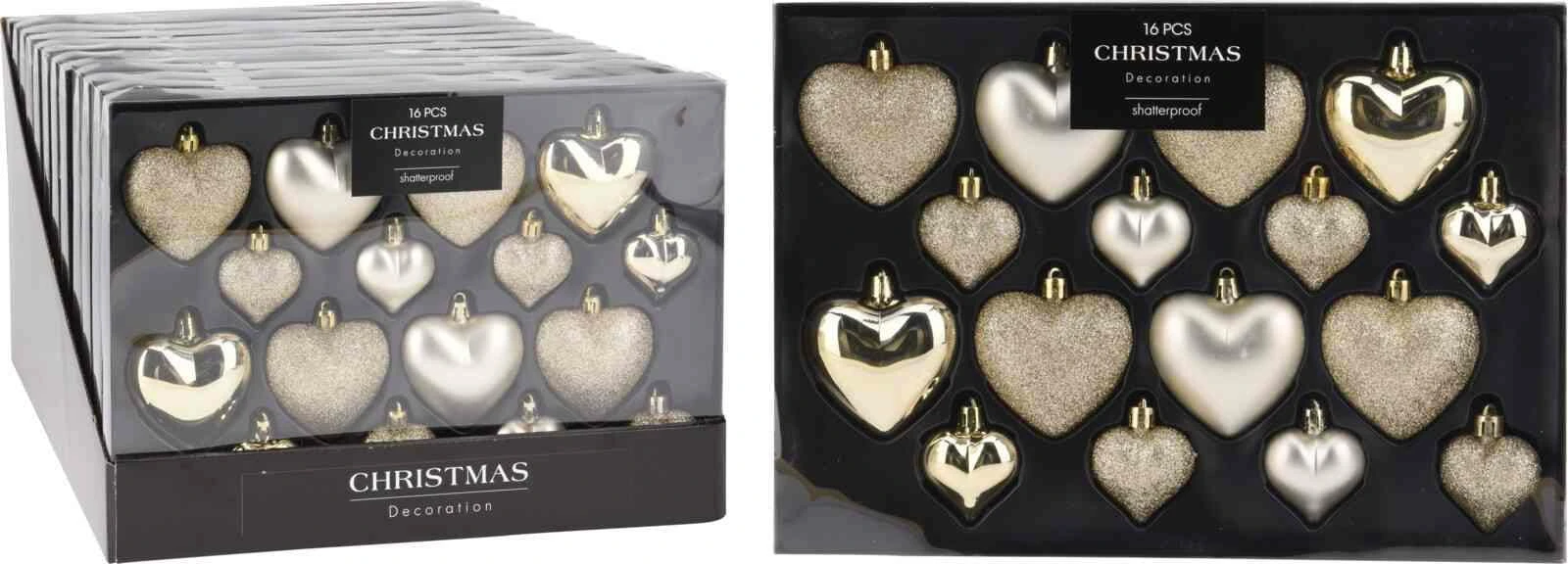 Bombki choinkowe zawieszki serca szampańskie 16 szt. 243254