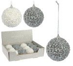 Bombki plastikowe srebrne i białe brokatowe 10cm 12szt 960642