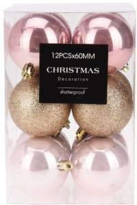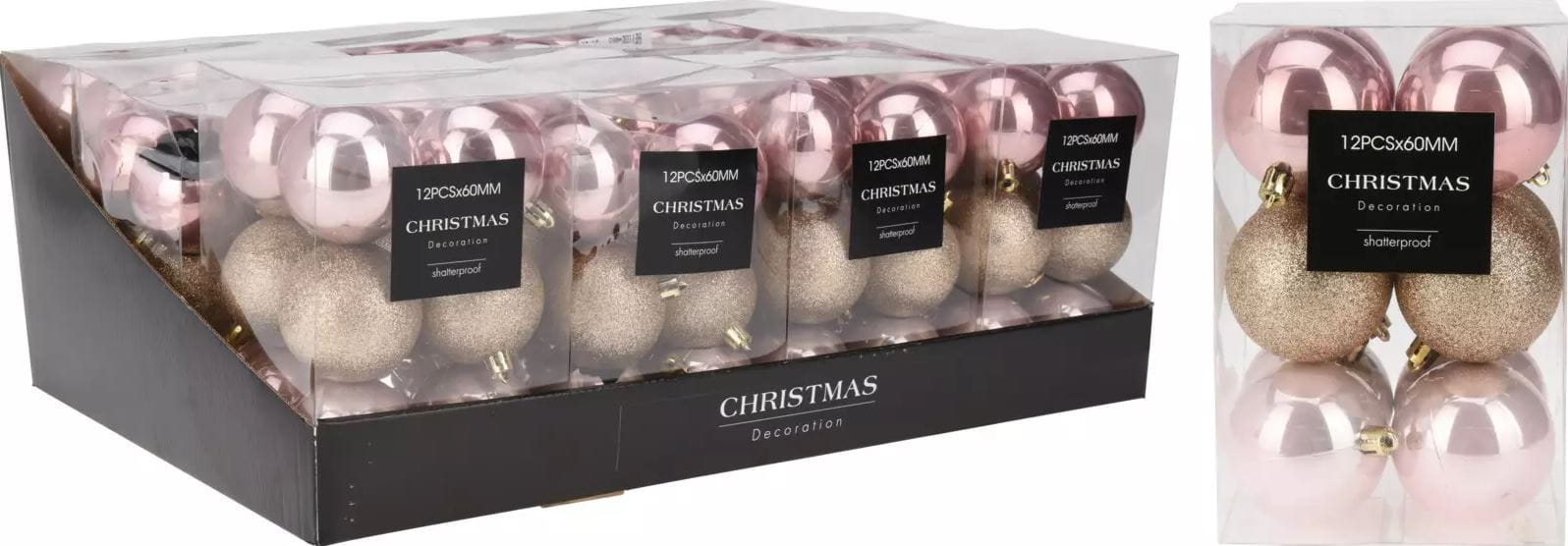 Bombki choinkowe różowo - złote 12szt 6cm 098281