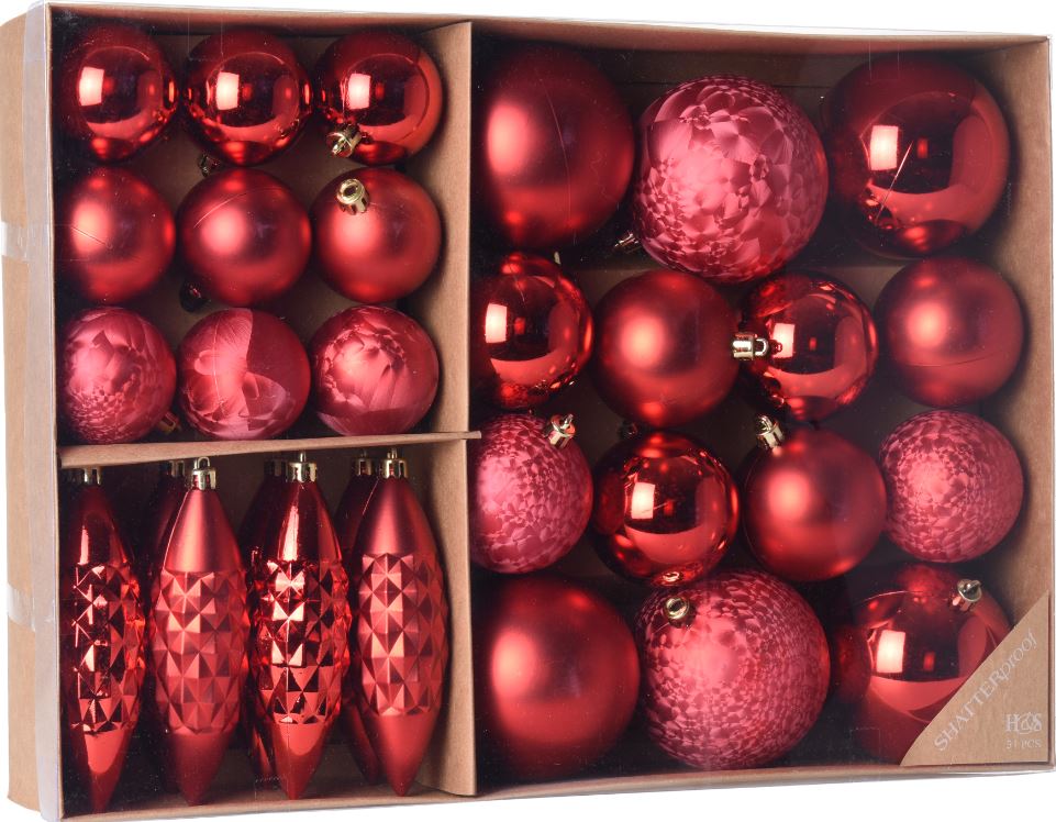 Bombki plastikowe czerwone zestaw 31szt 716399