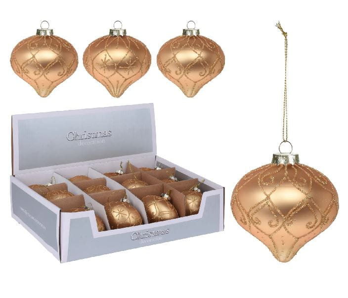 Bombki szklane złote łezki 8cm 12szt zestaw 552809