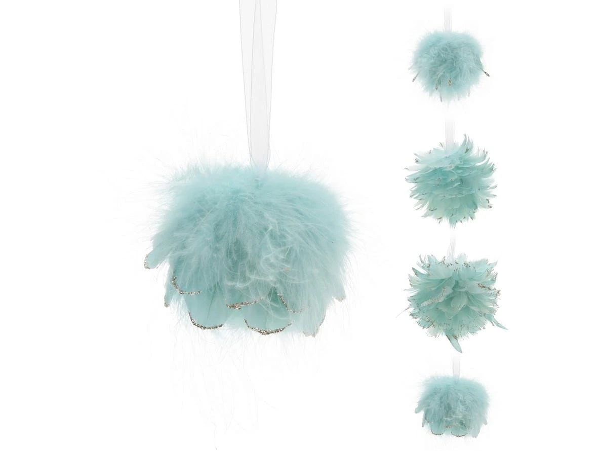 Bombki z piórkami niebieskie 10cm 1 szt 595257