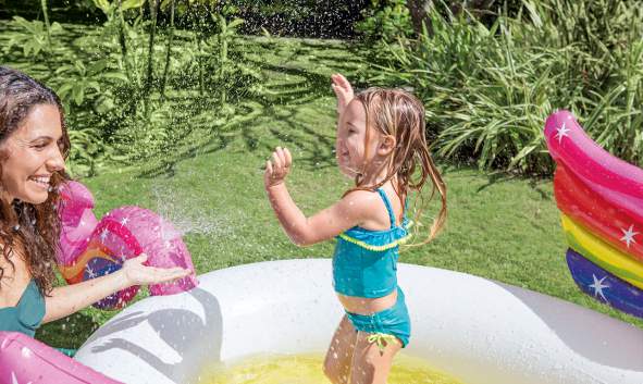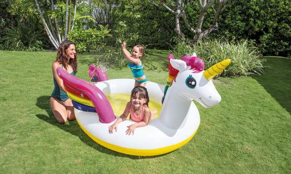 Basen w kształcie jednorożca z fontanną przypadnie do gustu każdej dziewczynce.