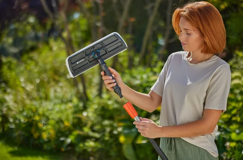 Myjka do okien GARDENA Cleansystem doskonale nadaje się do mycia szklanych powierzchni na zewnątrz.