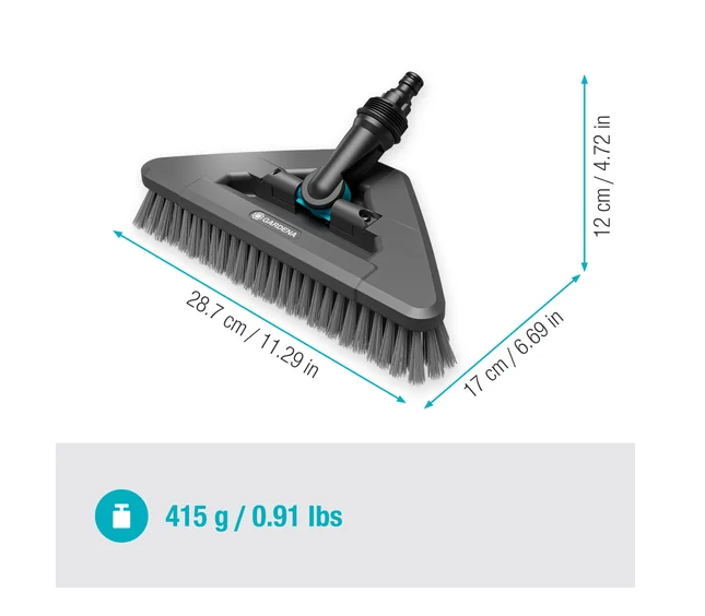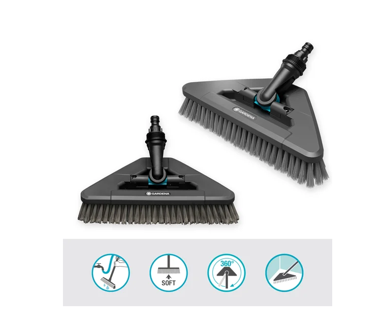 Zwrotna głowica szczotki, którą można obracać dookoła, umożliwia elastyczną pracę ze szczotką czyszczącą. Dzięki temu da się ją idealnie dopasować do czyszczonej powierzchni. Trójkątna szczotka wyposażona jest w elastyczny przegub, umożliwiający dotarcie do trudno dostępnych narożników i kątów.