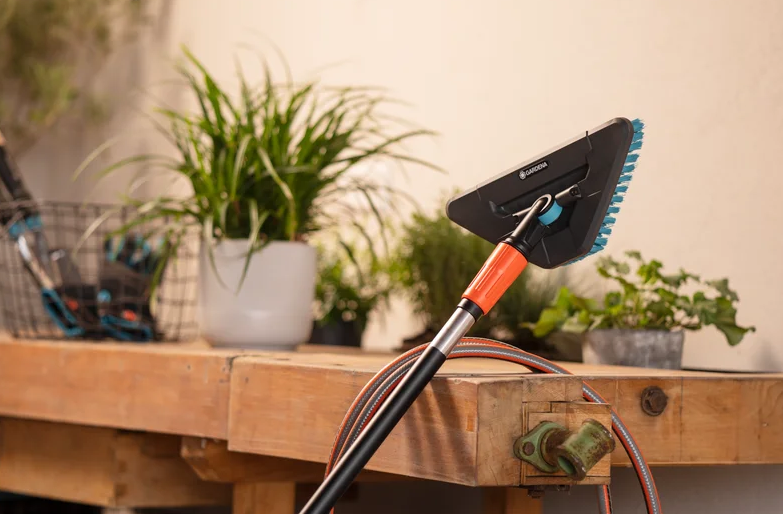 Aby dokładnie wyczyścić powierzchnię w mgnieniu oka, wystarczy połączyć twardą szczotkę Cleansystem trzonkiem, a nastepnie całość podłączyć do węża ogrodowego. Szczotka jest niezwykle łatwa w użyciu i nadaje się do wielu prac porządkowych na dużych powierzchniach wokół domu, a efekty pracy są zawsze imponujące.