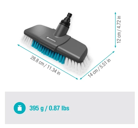 - Przewodzi wodę: Podłączona do węża z wodą za pomocą trzonka, szczotka idealnie czyści duże, niewrażliwe powierzchnie