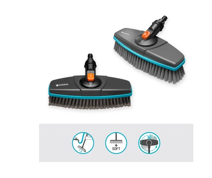 Aby dokładnie wyczyścić powierzchnię w mgnieniu oka, wystarczy połączyć szczotkę Cleansystem miękką z trzonkiem, a następnie całość podłączyć do węża ogrodowego. Szczotka jest niezwykle łatwa w użyciu i nadaje się do wielu prac porządkowych na dużych powierzchniach wokół domu, a efekty pracy są zawsze imponujące.