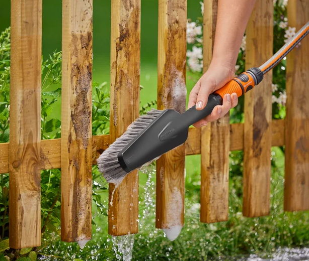 Miękkie włosie szczotki zostało opracowane specjalnie z myślą o wszystkich delikatnych powierzchniach zewnętrznych. Bardziej wrażliwe powierzchnie, takie jak okiennice i rolety, są czyszczone delikatnie i ostrożnie, bez pozostawiania zarysowań. Dzięki miękkiej, przewodzącej wodę szczotce dokładne czyszczenie odbywa się w mgnieniu oka.