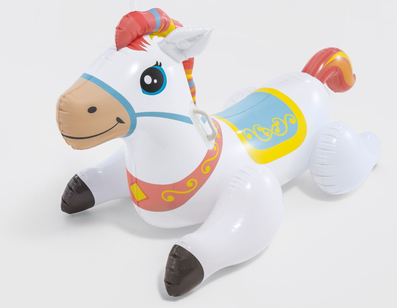 W zestawie znajduje się konik o wymiarach 124 x 58 x 66 cm, wyposażony w 2 uchwyty dla wygodnego przenoszenia.
