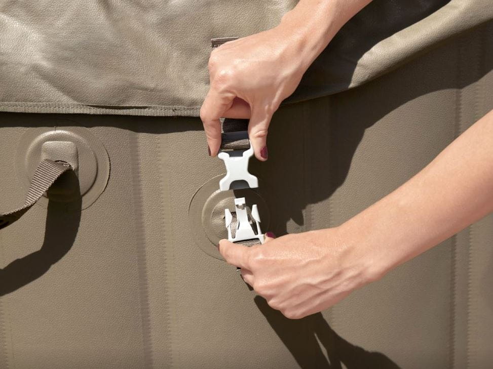 * Materiał DuraPlus — Nadmuchiwane ściany SPA wykonane są z trwałego, odpornego na przebicia materiału, który zapobiega uszkodzeniom.