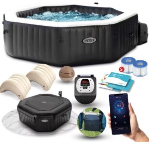 Sterowanie SPA przez aplikację WiFi sprawia , że za pomocą telefonu możesz włączyć masaż, ustalić temperaturę wody czy włączyć pompę filtrującą.Aplikacja dostępna na Android i iOS: Intex Spa Management App.