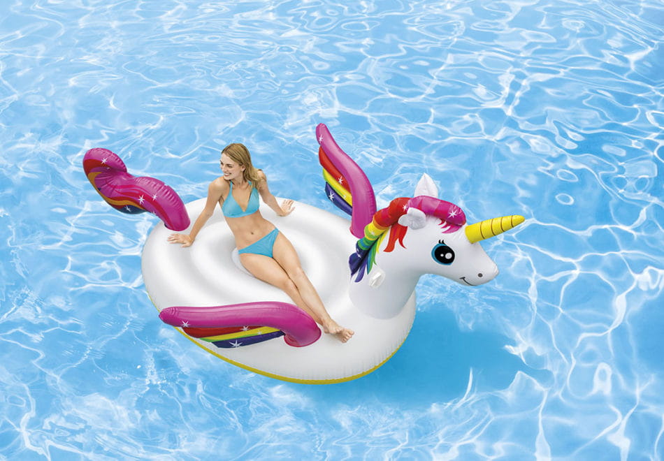 Piękny jednorożec w olbrzymim rozmiarze będzie prezentować się wspaniale podczas wakacyjnych kąpieli.