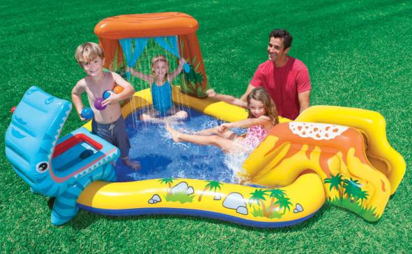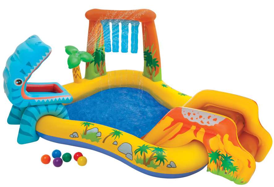 Dmuchany plac zabaw INTEX Dinozaur z wyposażeniem zapewni Twojemu dziecku moc atrakcji w letnie upalne dni. Plac zabaw wykonany z wytrzymałego winylu, bardzo stabilny i łatwy w montażu.