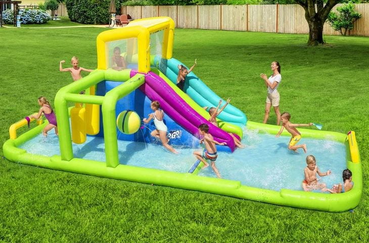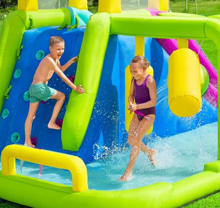 Kolorowy, dmuchany od firmy Bestway gwarantuje wspaniałą zabawę w ogrodzie przez długie godziny. Nie ma dziecka, które nie lubiłoby zjeżdżalni, basenu, zabawy w wodzie, wspinania się po ściance i wielu innych atrakcji! Dmuchany plac zabaw dostarczy tych wszystkich atrakcji i to we własnym ogródku. Bez wychodzenia z domu, bez kolejek i bez biletów:) Wystarczy tylko ogród z płaską powierzchnią, aby spełnić dziecięce marzenia o własnym placu zabaw