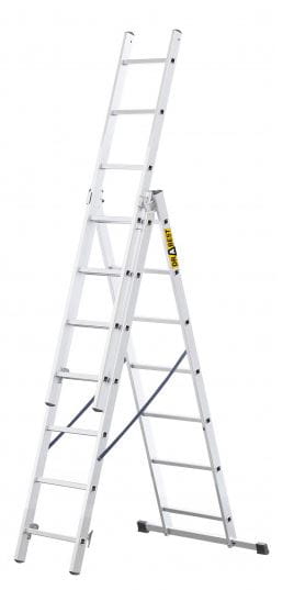 - Możliwość rozłożenia drabiny w pozycji przystawnej, wolnostojącej i z wysuniętym trzecim elementem